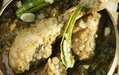 An Andhra delicacy chicken cooked with (Red Sorrel) Gongura leaves & spice.